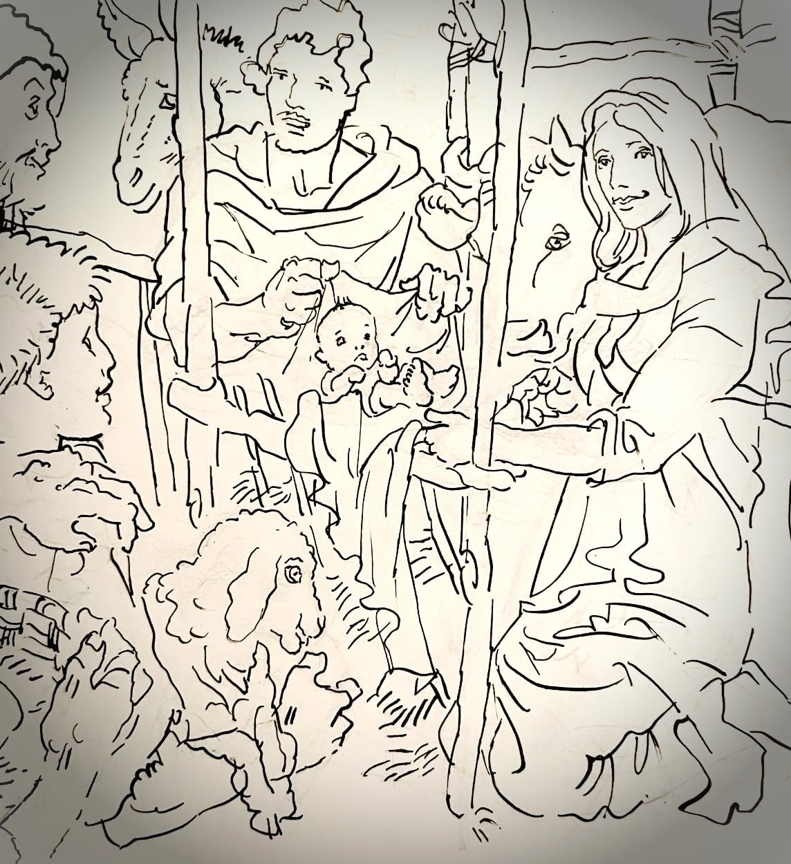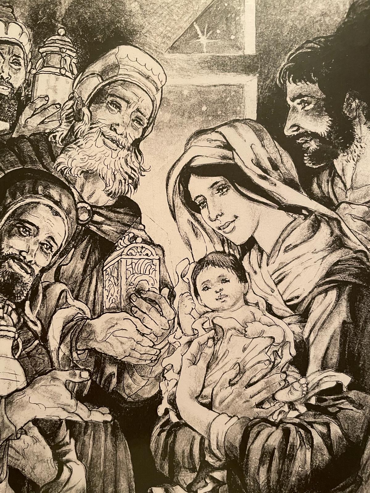 Partendo da alcune riflessioni insite nelle parole dell’Omelia nella solennità di San Giuseppe, del 19 marzo 1964 di San PAOLO VI (sotto riportata), e prendendo spunto dalla propria fede dove la famiglia diviene la prima chiesa, nascono le composizioni artistiche delle moltissime eleganti illustrazioni di Alfredo, dedicate e realizzate nei tanti anni di professione, a San Giuseppe. Nelle mani, nei gesti e nelle ambientazioni rappresentate del santo sono concentrate le mirabili, immense ed umili al contempo, esemplificazioni ed indicazioni e ci invitano caldamente e senza indugi, a seguire con devozione ed impegno il suo santo esempio! La partecipazione attiva e discreta di San Giuseppe nella vita di Gesù è evidente nei disegni di vita familiare e quotidiana. La sua figura rappresenta “il giusto” ed in questa caratteristica, ben comunicata nei tratti artistici configurati da Alfredo, si fondano le solide basi per divenire e palesarsi come “il protettore”! L’artista lo disegna umilissimo ma fondamentale, in disparte nella scena ma protagonista nell’atto di esporsi ed adoperarsi offrendo tutto sé stesso! Davvero come conclude la toccante omelia di San Paolo VI, in qualità di fruitori delle illustrazioni di Alfredo ci sorprendiamo a chiedere con atto di fiducia, la protezione di San Giuseppe, di egli che ci mostra, in modo umano e condiviso, tutti i non facili doveri e le non lievi fatiche, partendo proprio dalla fisicità del lavoro, che la vita tutta ci riserva. E poi alla fine, ci rallegriamo e fortifichiamo in questo! La scena a cui siamo più legati e quella che rappresenta la fuga in Egitto, dove San Giuseppe guida il piccolo Gesù avvolto nel materno abbraccio della Madonna. Egli con il supporto dell’Angelo, anticipa saldamente di qualche passo la Santa Famiglia, ma rivolge a loro il proprio amorevole sguardo, proteggendoli nel cammino!